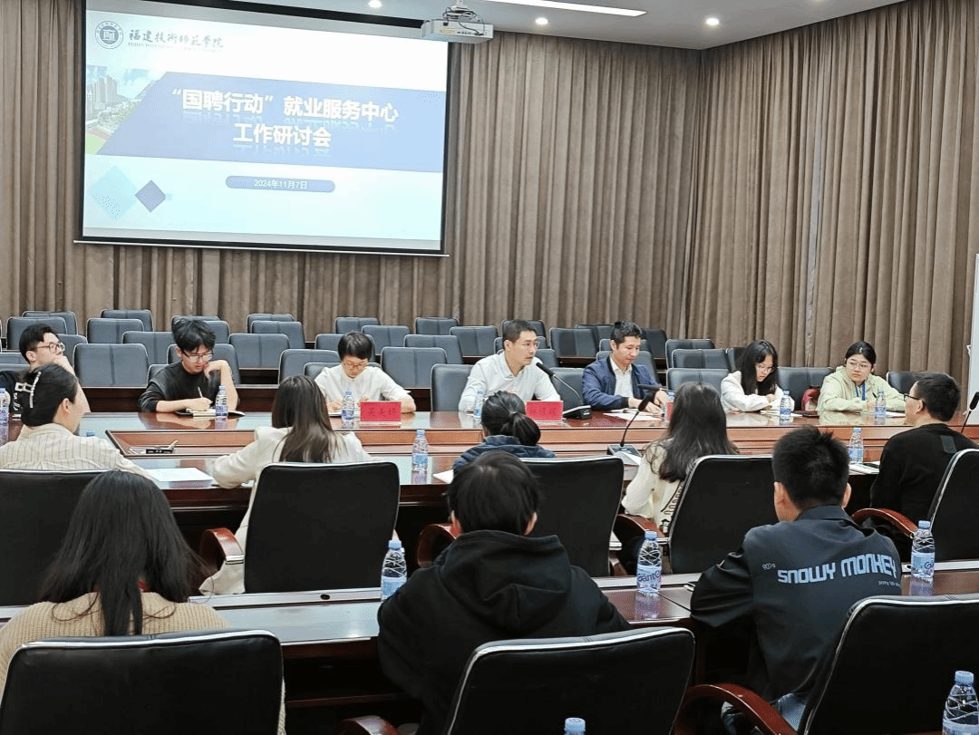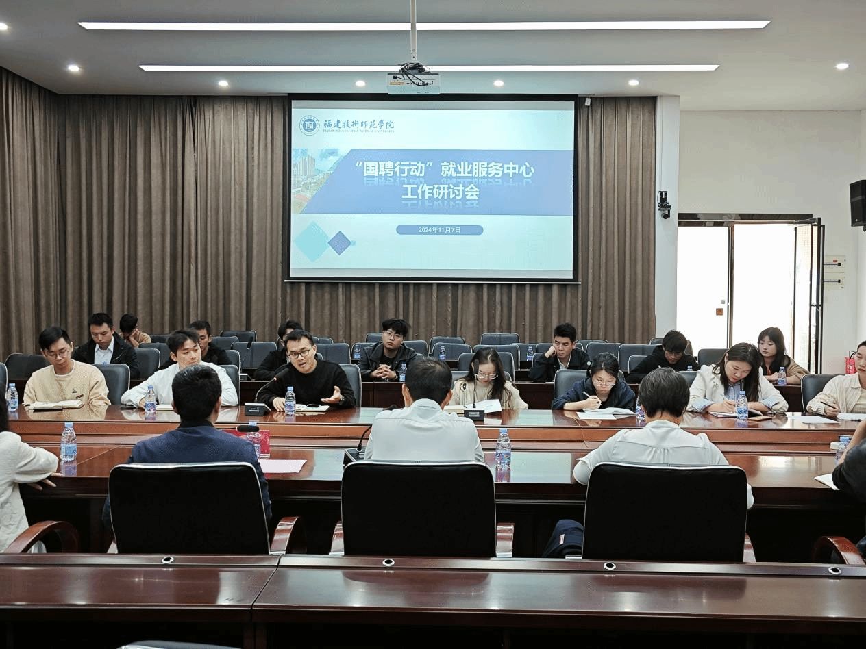 11月7日上午,我校召开“国聘行动”就业服务中心工作研讨会。学生工作部副部长、学生就业指导中心主任王耕,福建省国源教育科技有限公司产融部负责人林憬耀,毕业班辅导员代表,学生代表参加会议。