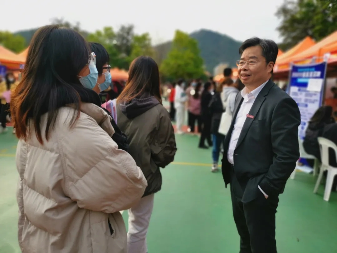在招聘会现场,廖深基校长、林海峰副书记走访各用人单位,与招聘人员亲切交流,了解企业用人需求、学生应聘情况以及对我校人才培养的建议,并对2022届毕业生就业工作作了现场指导。廖校长要求学校相关职能部门要分行业、分区域举办各类专场招聘会,满足不同专业毕业生的就业需求,努力提高人职匹配度,实现毕业生与岗位精准对接,不断提高供需对接成效。他希望同学们树立“先就业再择业”观念,抓住就业黄金期,综合自身条件和社会需求,不等不靠,主动出击,自信迎接机遇和挑战,早就业、就好业。